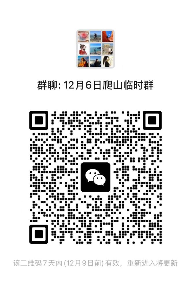 请感兴趣参加此次活动的队员加入临时群(长摁二维码可自动加入)。如果天气原因不允许,活动将顺延或取消。搭车费用分摊指导原则见文末。
