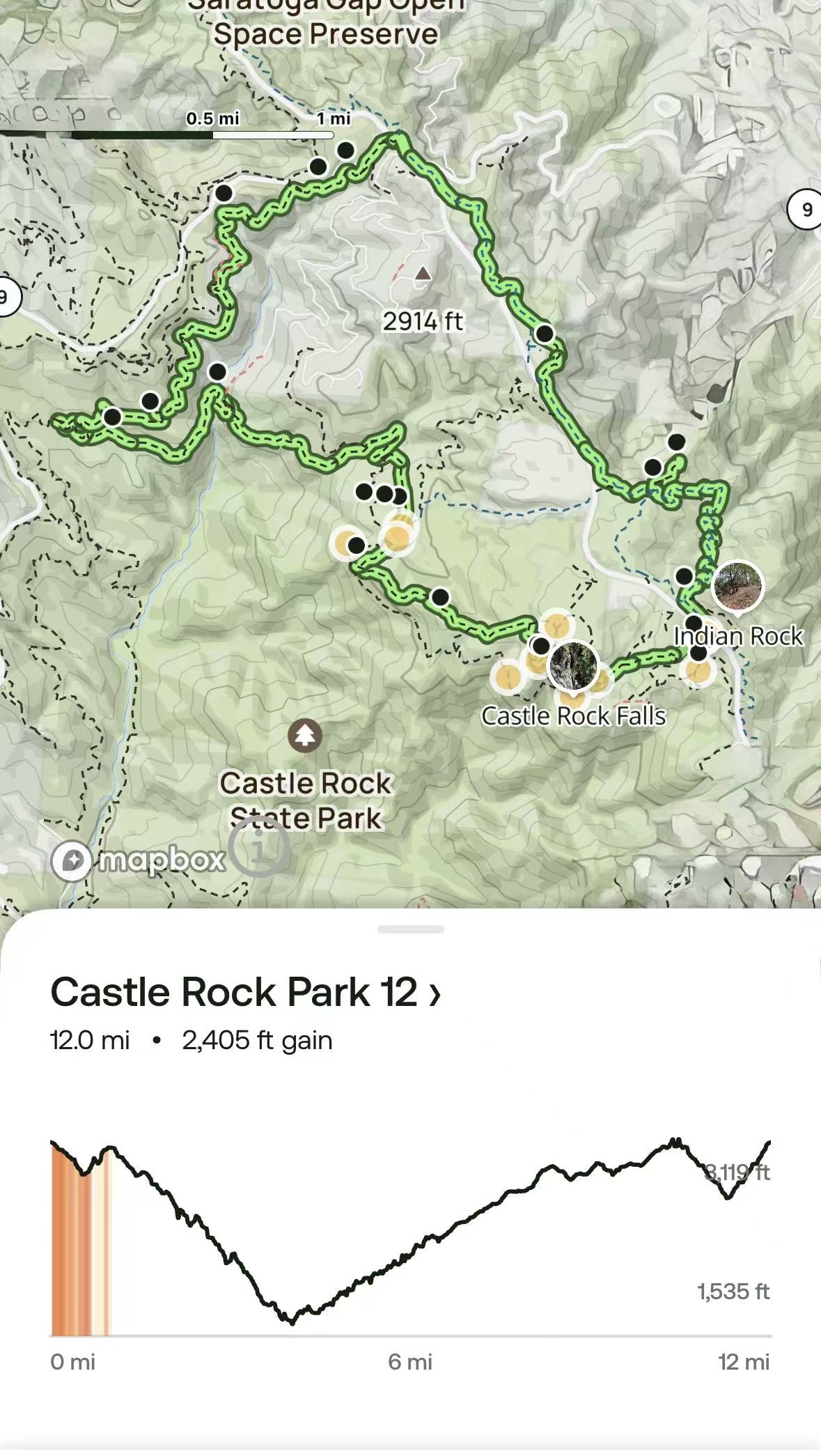 新增标准线路8迈(第103条线路):Parking Lot – Castle Rock Trail – Castle Rock(3214ft)- Ridge Trail -Goat Rock – Ridge Trail – Interconnector Trail – Saratoga Gap Trail – Service Rd Trail – Loghry Woods Trail -(跨过35号公路,请注意安全) – Skyline Trail – Summit Rock Trail – Summit Rock(海拔3076ft)- Summit Rock Trail – Summit Rock Loop – Skyline Trail-(跨过35号公路,请注意安全) – Parking Lot