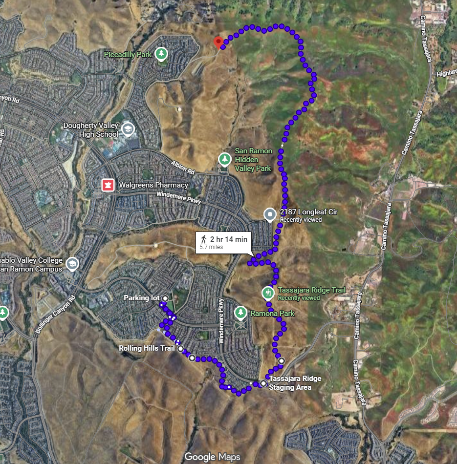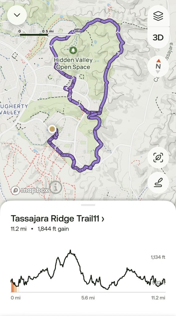 来回11迈。Parking Lot-Rolling Hills Trail-Tassajara Ridge Staging Area-Hidden Valley Ridge Trail -Tassajara Ridge Trail-Rolling Hills Trail-Parking Lot。